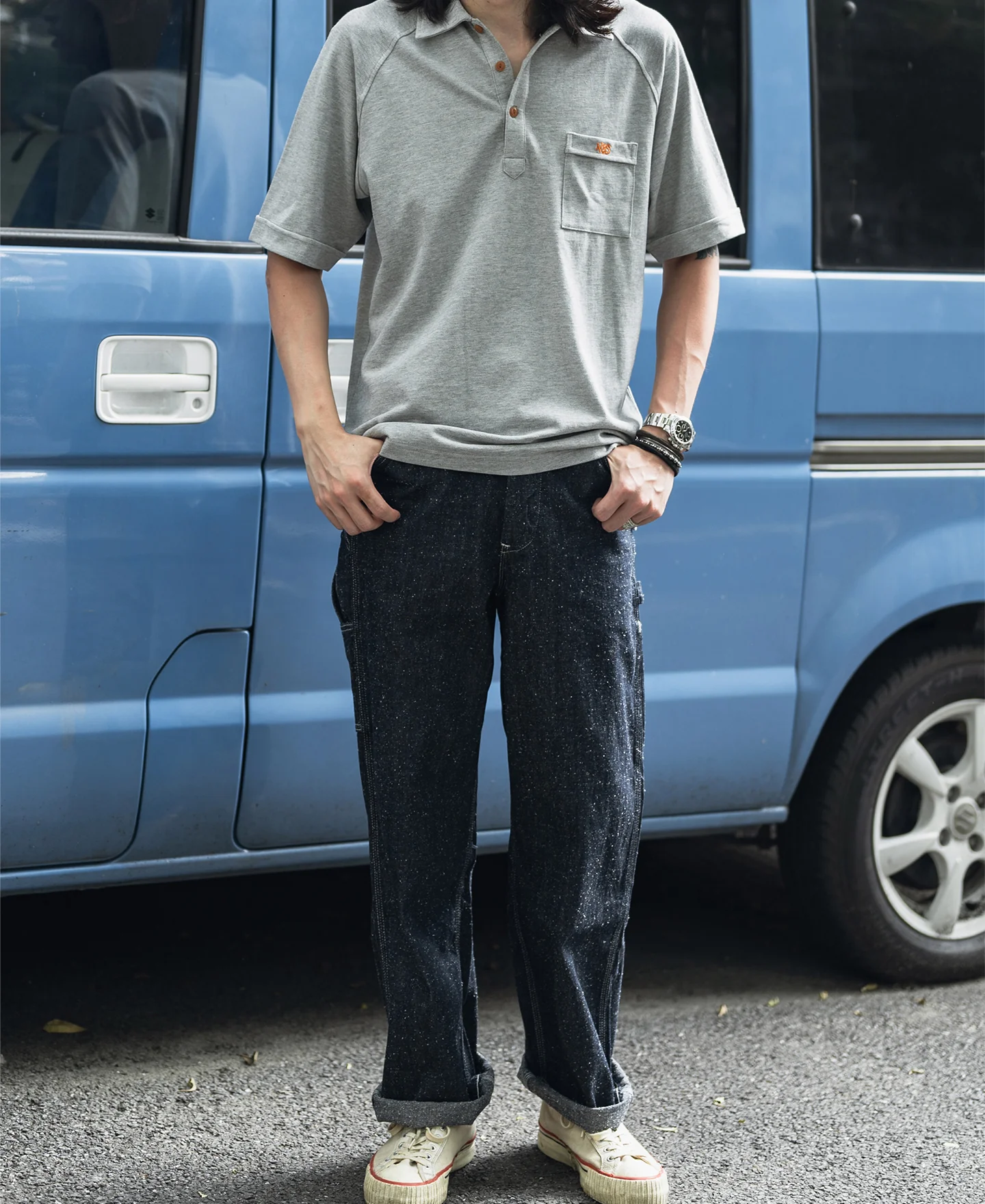 Cut to an Asian sizing standard with a slim fit. The fabric offers natural stretch.