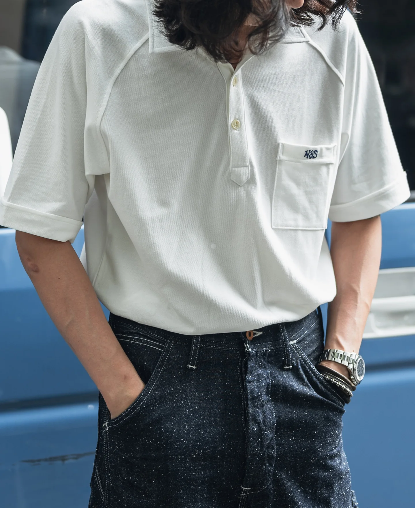 Cut to an Asian sizing standard with a slim fit. The fabric offers natural stretch.